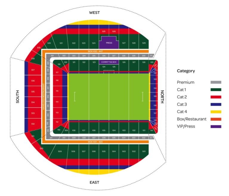 Catégorie 1 : Tribune latérale intermédiaire et inférieure (en vert sur le plan)