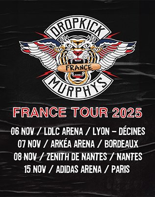 Le groupe de punk celtique Dropkick Murphys débarque en France pour 4 dates, dont une à Paris, et ça promet d’être électrique ! Connus pour leur franc-parler, les membres sont devenus au fil des années des éléments incontournables de la scène US. Très politisé, le groupe critique ouvertement Donald Trump ou encore Elon Musk (il a d’ailleurs quitté le réseau social Twitter, devenu X, lors de son rachat par le milliardaire).